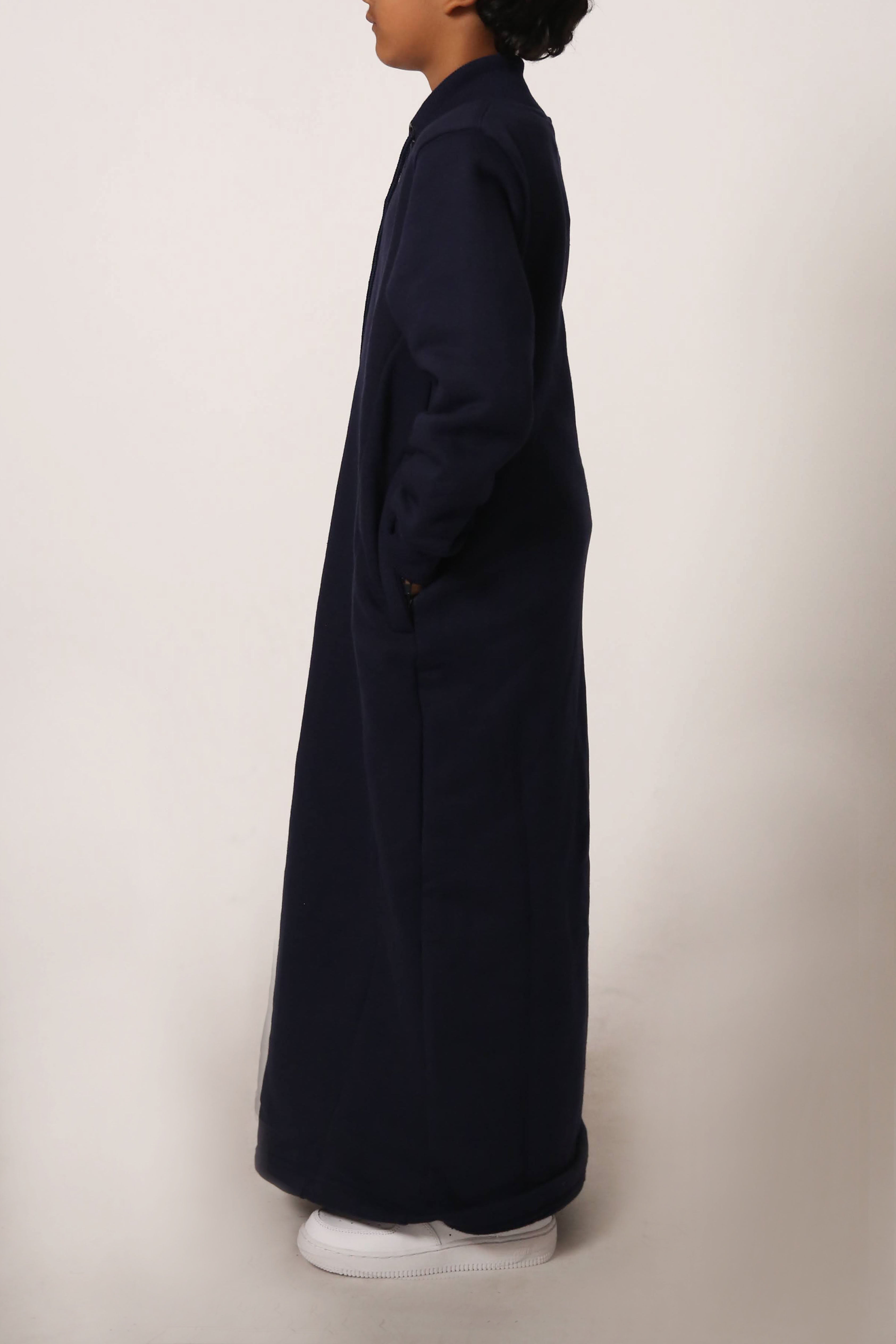 Your young guy will be comfortable and cozy in our exclusive mockneck thobe.