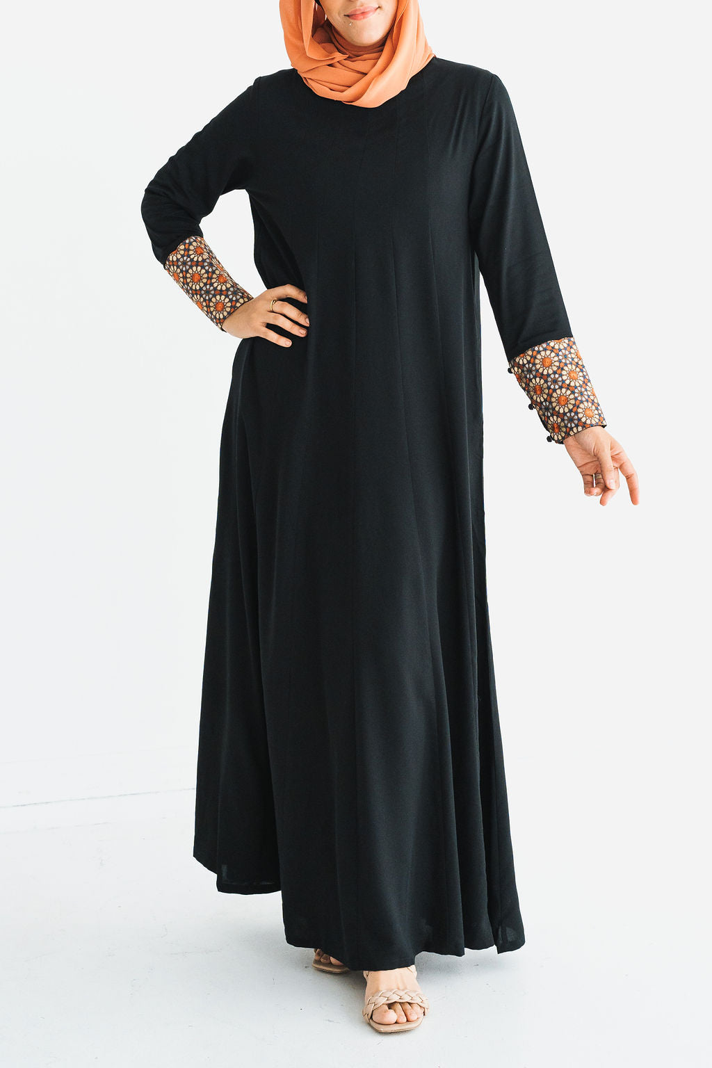 •panels on front and back give this abaya a flowy fit