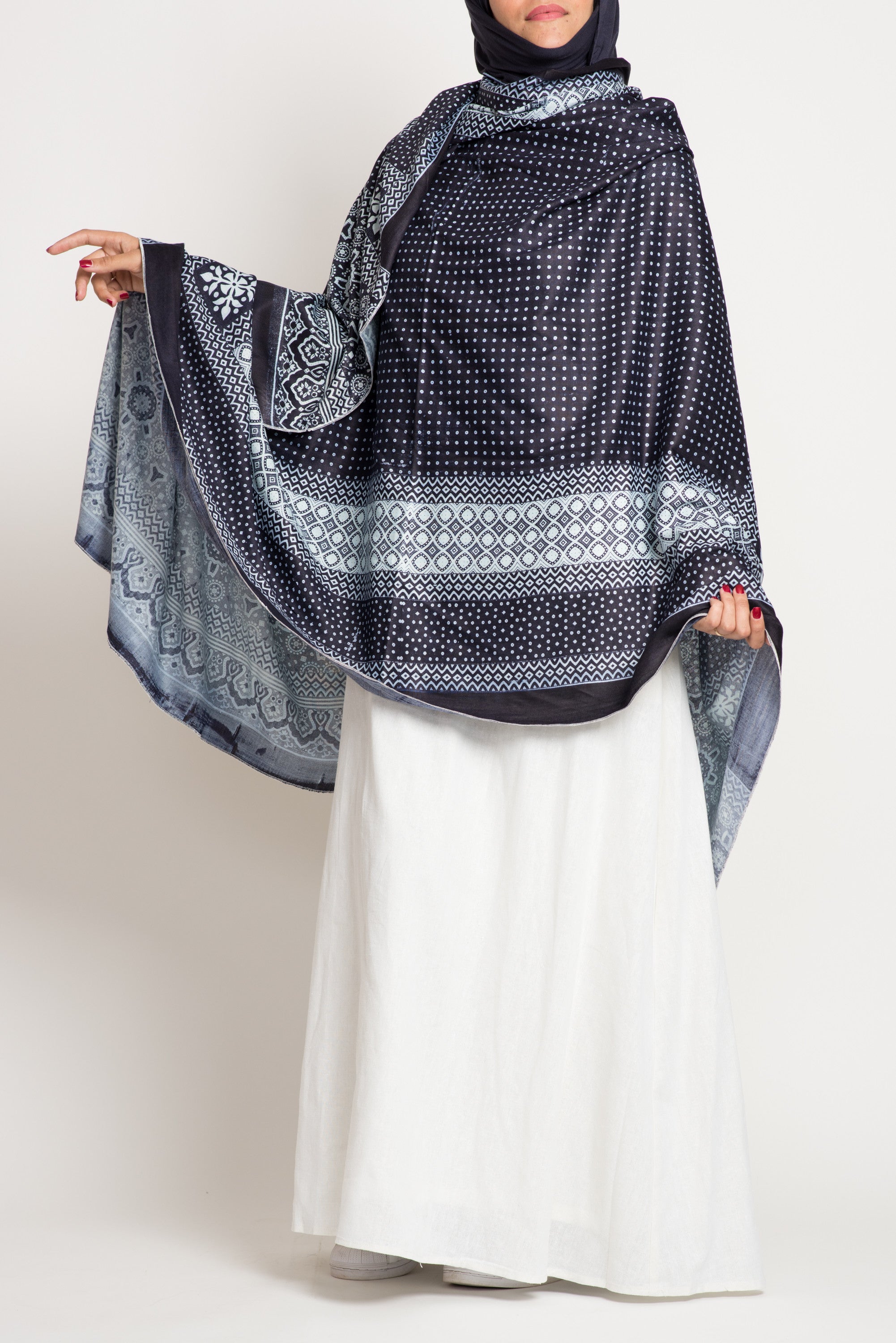 Ajrak shawls have been a part of our lives since we were young. For nice coverage while praying or even serving as a light blanket for our babies, we quickly fell in love with the unique block prints, staple colors, large size and fabric that softened with each wear. Aabideen is pleased to now be carrying these Ajrak shawls. Each piece is handcrafted and variances in the shawls add to their beauty and uniqueness.