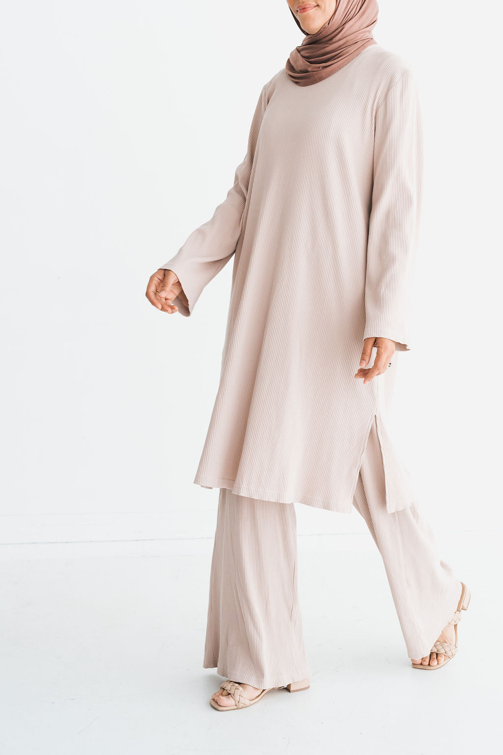 Women's Beige Ribbed 2-Piece Co-Ord Set
